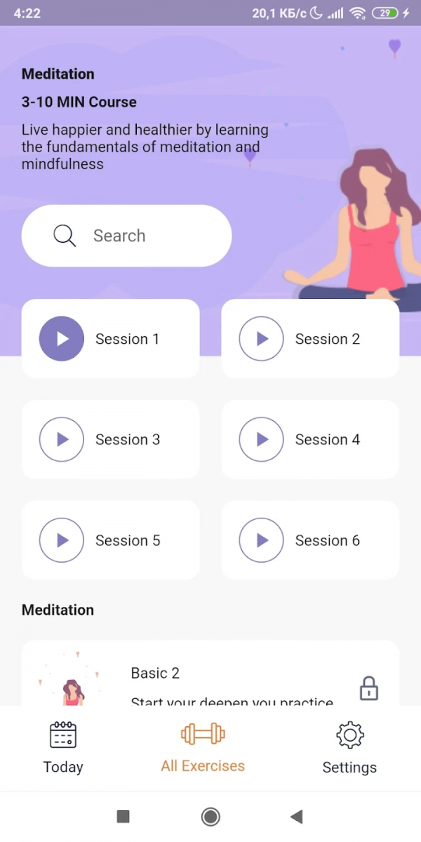 С помощью этого приложения вы можете ставить себе ежедневные упражнения по медитации и практиковать их.